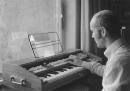 This is Heinz Bohlen's original homemade electronic organ from 1972, in Gamma Mode. To the right, Heinz is tinkering with the transcription of a Christmas carol into his "13-Step Scale" (1973).